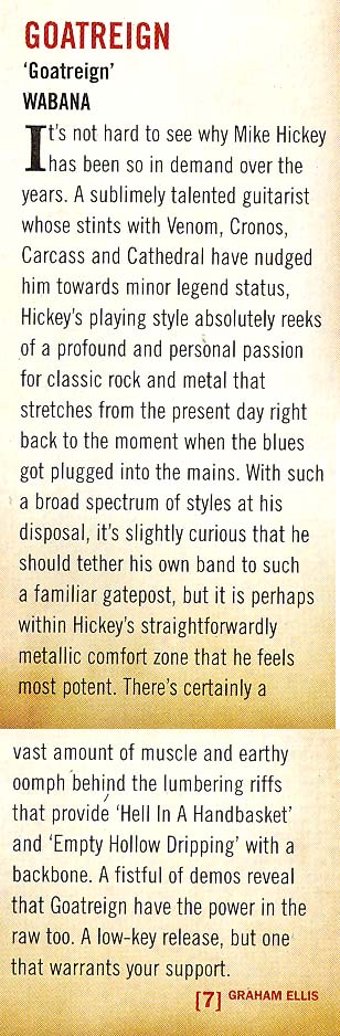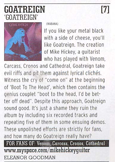 Cargo Records UK have set a release date of August 13, 2007 for the GOATREIGN cd.