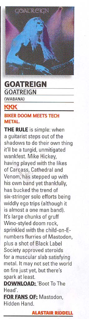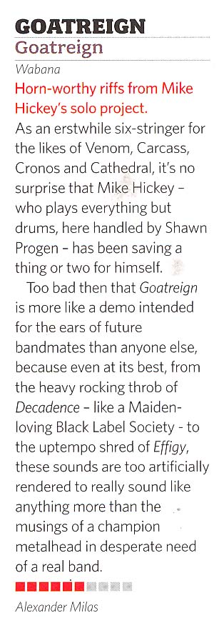 Goatreign features Mike handling guitar, bass AND vocal duties with